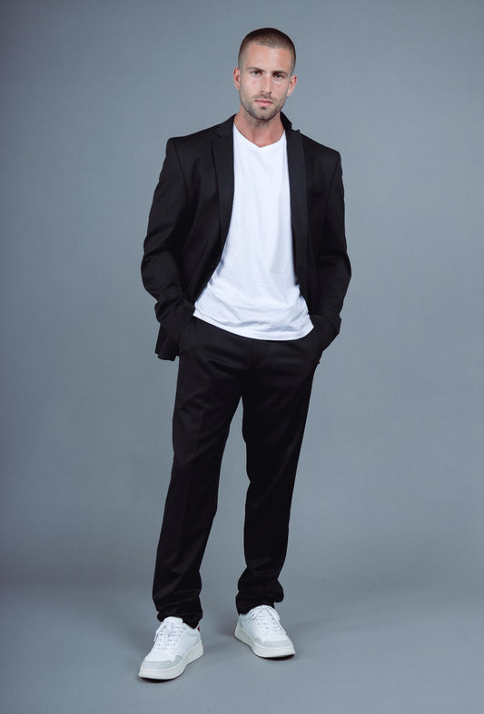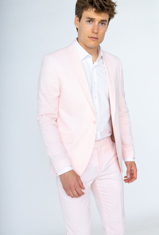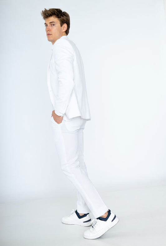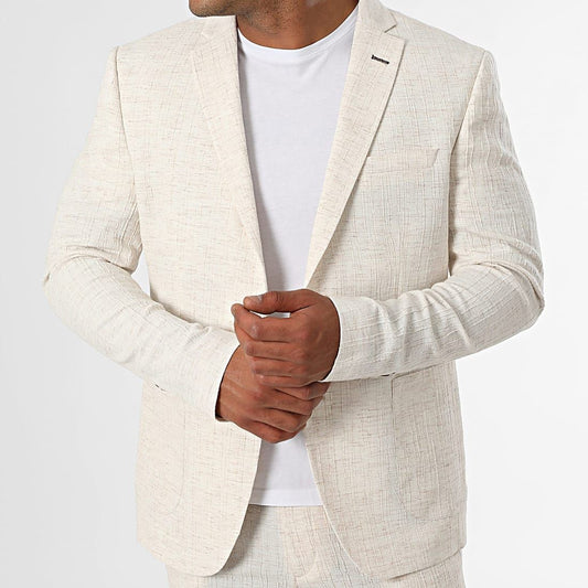 Costume Slim Marron à Rayures Blanches 2 Pièces